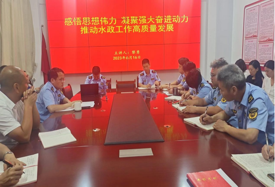 为深入学习贯彻党的二十大精神,教育引导广大党员自觉用习近平新时代中国特色社会主义思想武装头脑,通过主题教育锤炼品格、强化忠诚,2023年6月16日,市水政支队党支部组织开展“践初心,强党性,感恩奋进新征程”主题党日活动。活动由支部书记黎勇同志主持,支部全体党员参加活动。