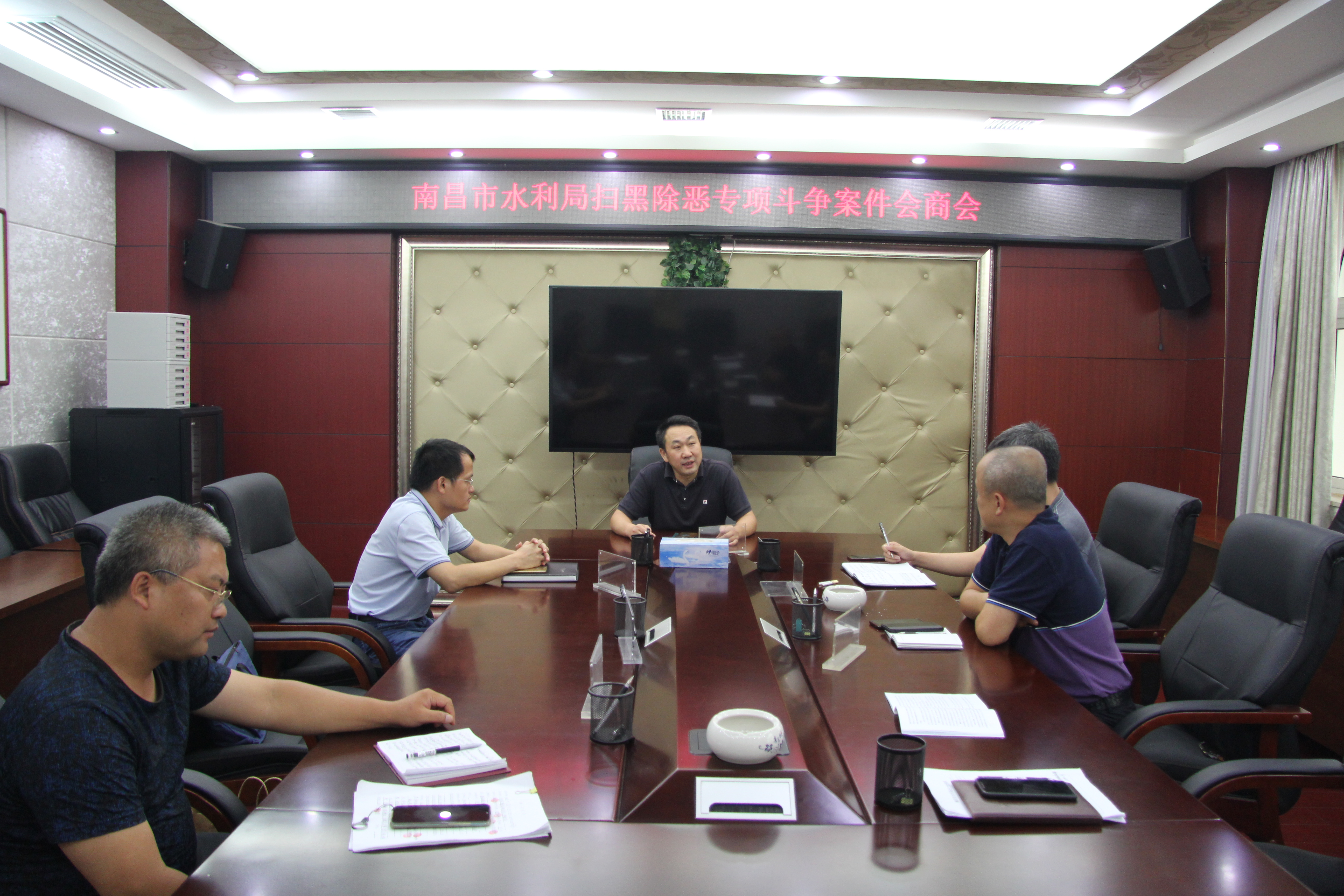 参加会议的有局扫黑办成员,市水政支队相关负责人,南昌县水政大队,赣昌公司相关负责人。