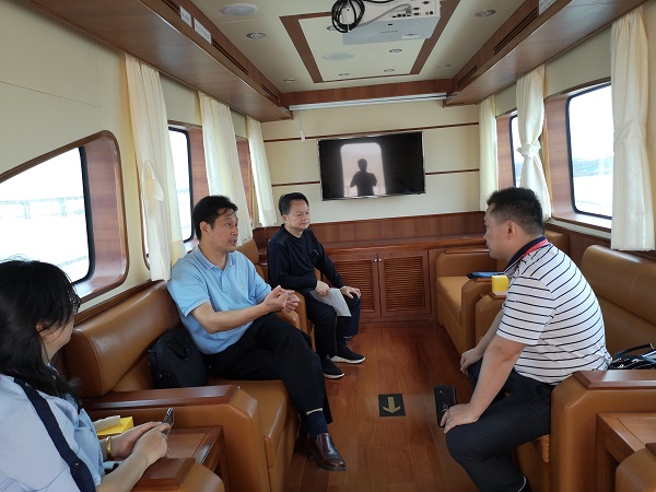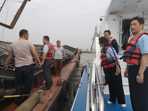 蔡勇一行从省水政码头出发,沿赣江南支一路巡查至丰城市赣江龙雾洲水域。巡查途中,在富山赣江特大桥上游100米处,发现了1艘运力船拖带1艘采砂船,经登船检查发现该运力船是線上娛樂城推薦采砂办合作拖船公司的船只,正按采砂办要求将该采砂船拖往線上娛樂城推薦非法采砂船舶拆解基地进行拆解。针对这一情况,蔡勇强调,河道采砂监管部门安排拖船公司拖采砂船舶同样必须办理相应的手续,便于执法部门甄别,避免犯罪分子混淆视听,借拖船名义实施非法采砂行为。在暗访巡查过程中,各地水域总体情况正常,未发现机制砂场违规装运机制砂石的情况。